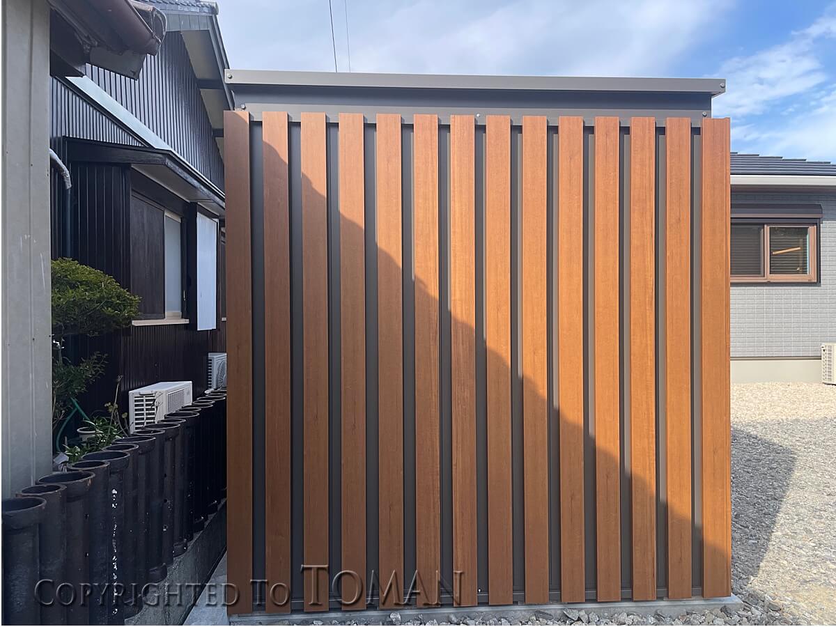 物置本体の壁面に木調のスリットパネルを取り付けた高級感あるデザインのGMシリーズ。