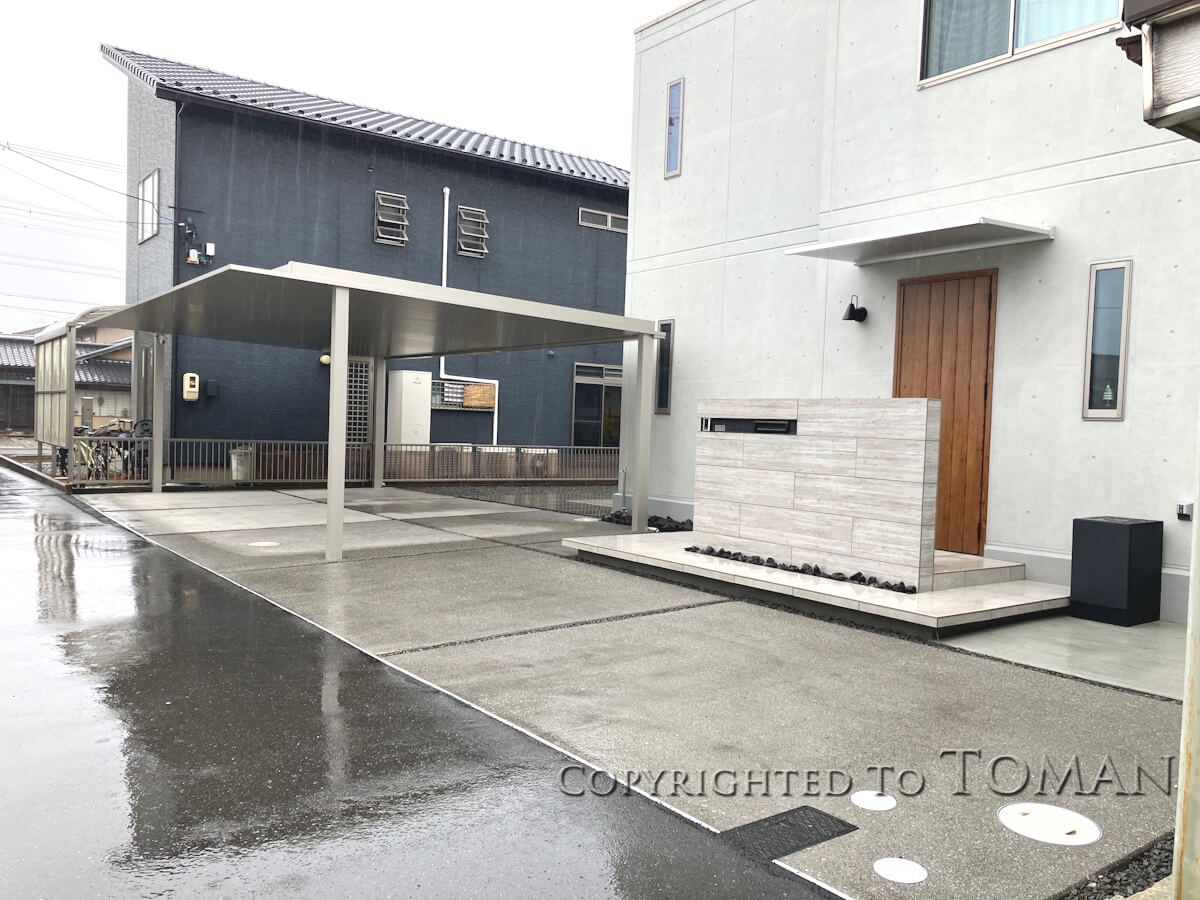 コンクリートの質感に合わせた統一感抜群のシンプルモダン新築外構 三重県川越町 H様邸 23107