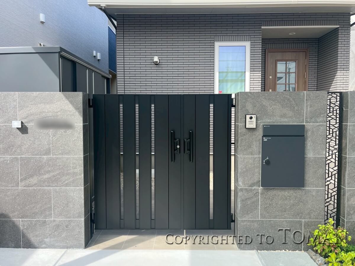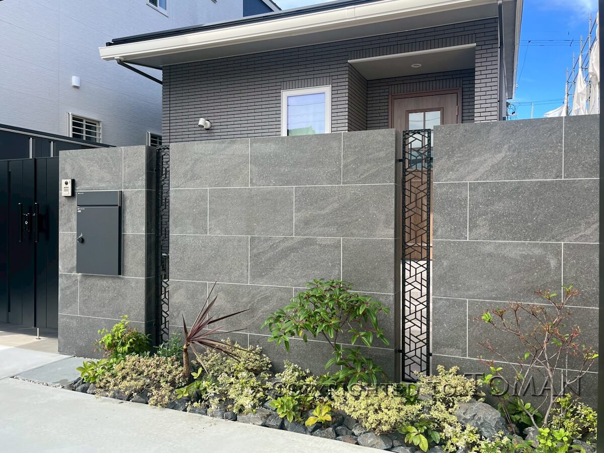 大判タイルの門塀が高級感を生み出すスタイリッシュモダンなクローズ外構 三重県津市 K様邸 23021