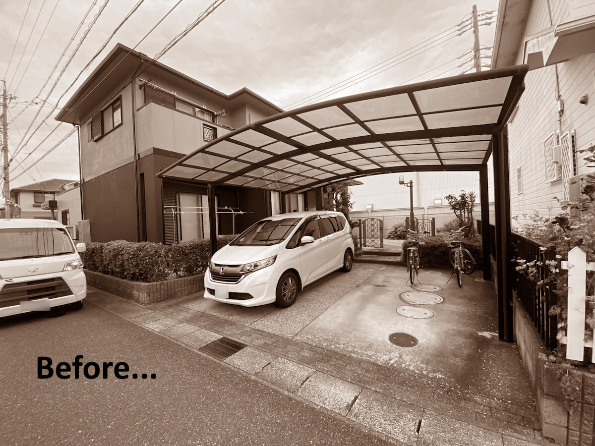 カーポートのやり替えもご検討されていましたが、あえて屋根材の交換のみにとどめることで、住宅の外観と、リフォームした外構の調和がとれました。